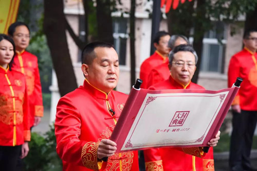 伴著莊嚴的古樂聲,國窖始祖舒承宗塑像屹立高處。瀘州老窖酒傳統釀制技藝傳承人,以傳統禮儀祭拜先祖,感恩祈福,簡樸但莊重有序的儀式表達了瀘州老窖釀酒人不忘根本、傳承技藝的虔誠之心,以及對國家和人民的無限美好祝愿。