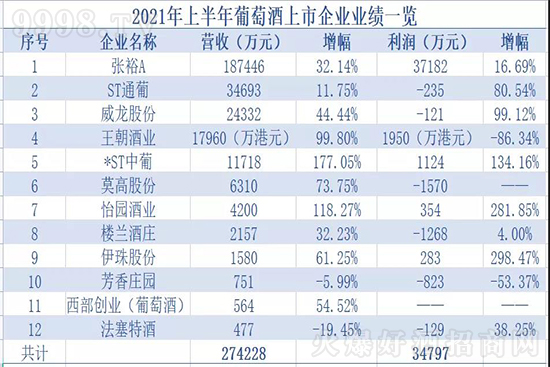 截至2021年8月28日,除通天酒業(yè)外,其余12家葡萄酒上市企業(yè)2021年度上半年業(yè)績報告已悉數(shù)發(fā)布。