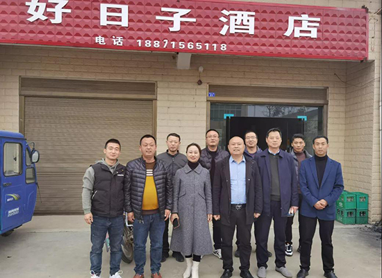山西汾杏酒廠銷售公司總經理徐濤(右三)與湖北棗陽新鴻遠商貿吳家遠(右二)走訪市場合影留念