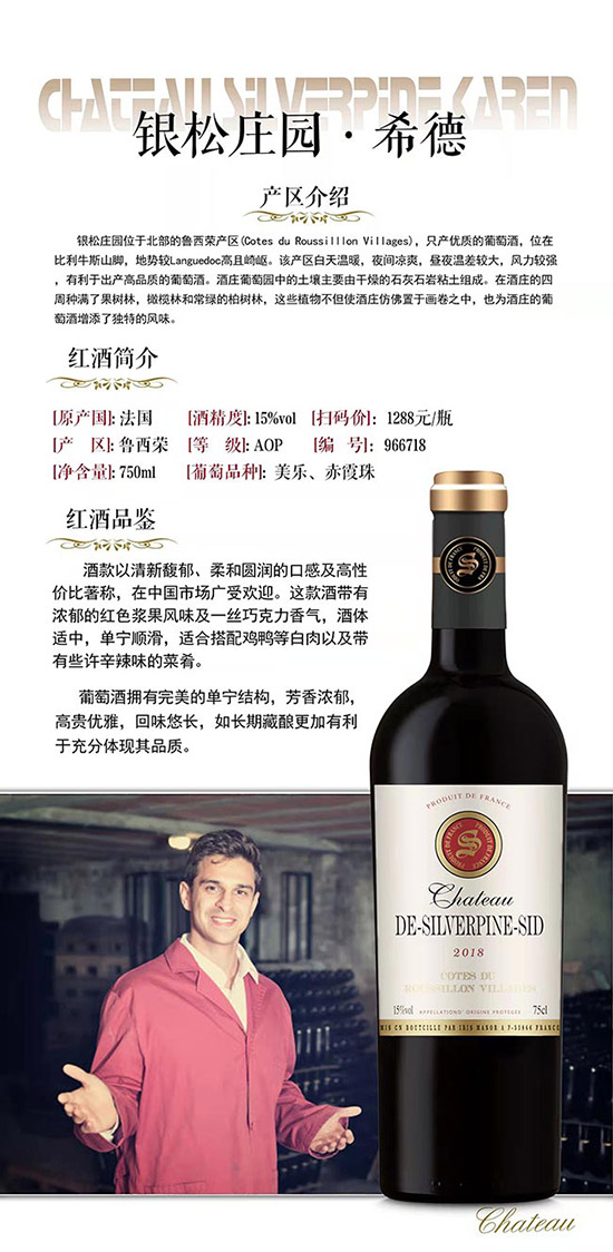 產(chǎn)品名稱:銀松莊園·希德干紅葡萄酒