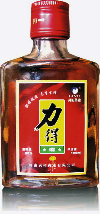 產品名稱:力得保健酒  產品特征:抗疲勞,,調理人體各項機能。  產品優勢:本公司通過國家GMP認證,以制藥的標準來生產。并由國家釀酒專家黃書聲先生親臨指導以確保產品的品質。本酒遵循秘方,結合現代生產工藝,以優質純糧酒為酒基,浸入人參,黨參,枸杞,山藥等名貴中藥。不含任何添加劑,金黃晶亮,藥香淡雅,酒味醇和,飲后圖不痛,口不渴,蕩氣回腸,余味綿長,口爽齒香,不僅使您在飲酒時擁有愉悅的心情,同時也給您帶來身體健康的功效。是二十一世紀時尚生活的綠色食品,更是宴請賓客饋贈親友之精品。