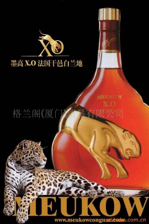 墨高干邑MEUKOW始創于1862年,是法國老牌子,在圣彼得堡和莫斯科享譽甚高,其產品遠銷美國、俄羅斯、日本、芬蘭等歐洲國家,以及斯堪的納維亞和遠東地區。1978年為法國CDG烈酒集團(較大的五家干邑生產商之一)所控股。 一只的24K金豹像代表了墨高XO完美和諧的及至境界無人能匹!如火的紅褐酒液匹配晶瑩剔透的豹紋瓶身造型,猶如山野間燃燒的熱情奔放在香花蜜果的清芬中,溫暖和諧,口感豐腴,是墨高系列的無上逸品。該酒榮獲2007年巴黎烈酒評比賽金獎。