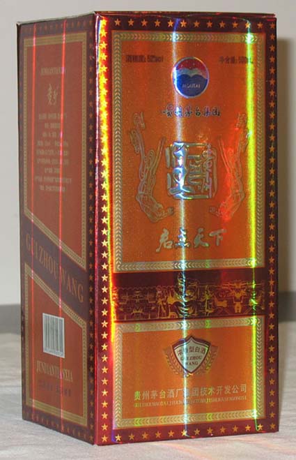 茅臺君點天下酒是茅臺酒的新貴族,生產工藝古老而獨特,彰顯古代和現代的完美結合。優質精品“茅臺君點天下”品牌系列。該系列:晶瑩剔透,窖香濃郁,口感細膩,余味悠長,具有使人飲用后頭不痛、口不干的特點。酒精度有自38度至53度,有適合做酒店、超市的中品種;也有適合做流通市場的中底檔品種。產品通過國家ISO9001品質管理體系認證。