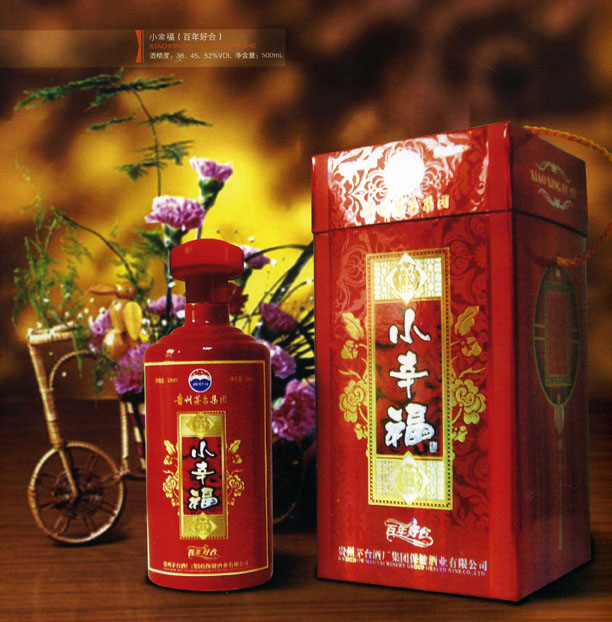 產(chǎn)品名稱:百年好合  產(chǎn)品型號:濃香型  酒精度:38、45、52%VOL  凈含量:500mL  百年好合:“執(zhí)子之手、與子偕老”。是一種不薄的緣份,一種平淡美滿的幸福。  特質(zhì):酒液無色透明,開瓶噴香撲鼻,酒味醇厚協(xié)調(diào),入口甘綿凈爽。