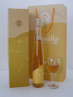 本產品采用優質精選名貴純種的VIDAL(威戴爾)冰葡萄為原料,在冰霜嚴寒中采摘,經破冰、榨汁、發酵精釀而成。果汁較普通汁濃縮十倍以上,因此具有新鮮怡神,優雅濃郁的芳香,醇柔爽潤的口味飲之回味悠長。