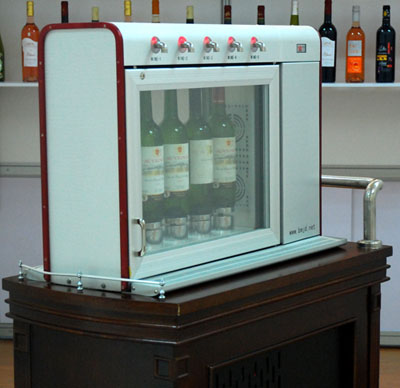 葡萄酒分杯售酒機具有分杯、冷藏、保鮮等功能.特別適合在酒樓、西餐廳、 竭誠歡迎各地經銷商、星級酒店、餐廳、夜場、酒吧、連鎖賣場、高尚會所、大型社區品位店、白領創業者攜手合作,真誠歡迎有共同志趣的朋友及實體店加盟合作! 葡萄酒分杯售酒機具有分杯、冷藏、保鮮等功能.特別適合在酒樓、西餐廳、酒吧等地方促進葡萄酒的銷售.它能夠讓顧客花少錢便喝到的葡萄酒,從而也能夠提高酒樓的總銷售額.目前您可以以下方式與本公司合作:“前列:租賃葡萄酒分杯售酒機;第二:購買葡萄酒分杯售酒機;第三:銷售分成” 葡萄酒分杯售酒機由兩部分組成: 前列部分:為售酒機主機,該機外形尺寸為:800*300*550(mm)     采用惰性氣體保鮮(通用型),完全隔絕瓶內酒液面成空氣接觸,瓶內無氧,達到長時間保存                                    葡萄酒單寧,果香,為分杯品酒,售酒提供兩星期或更長時間;     該設備裝備進口致冷壓縮機,品質穩定,先進的風冷式結構,使之箱內可視鋼化玻璃窗無結露,結霜,溫度可自由設置,自動控制;     機體采用>50mm厚聚胺脂泡沫保溫,機箱兩側活動門采用三層鋼化,亞克力透明視窗,絕斷冷橋,保持箱體嚴密,具有良好清晰的葡萄酒酒標可視性;     箱體采用高級拉絲氧化鋁合金材料,具有高貴典雅,衛生,易打理;     設備電路采用微電腦控制,一卡通管理系統,每個出酒口出酒量可預先設置,每個出酒口價格與出酒量可預先設置,例如:某個出酒口設置量為25ml,價格10元錢,將IC卡插入機箱盒內,選擇該酒瓶上方的對應按鈕,每按下一次,即出一次25ml,二次即杯內累計為50ml,手指按下按鈕不動,即連續按倍量出酒,并連續從IC卡上扣款,非常方便,直觀;     售酒機與第二部分木質車裝配組合成固定或移動式;     該機箱內置雙排酒座     前排為:5瓶可分杯出酒口位     后排為:5瓶未開啟木塞葡萄酒口位,作為貯藏預冷。 第二部分:為葡萄酒售酒機附設備,     高級木紋貼皮酒水車,尺寸為:930*480*750(mm);     車內裝置主機壓縮機;     惰性氣鋼瓶;     移動電源;     溫控顯示。 聯系方式如下: QQ:1065610733 聯系電話:0755-82206286   13691803762 (趙先生) E-mail:bmjd_wine@163.com 公司網站:http://www.bmjd.net/caner.asp 公司地址:深圳市羅湖區湖貝路2010號大唐元亨酒超市三樓