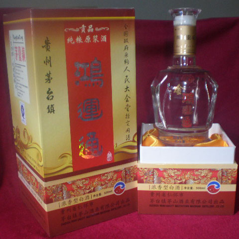 我公司生產廠始建于一九八三年,是仁懷市的濃香型白酒生產基地。座落于馳名中外的酒都、國酒之鄉—茅臺鎮,地處黔北大婁山脈西端的赤水河畔。赤水河流經區域均為紅砂土壤(朱砂土壤),水質清澈甘咧無污染,水中含有大量對人體有益的微量元素,加之茅臺鎮方圓五公里范圍內,夏天高溫、高濕酷熱,冬天溫暖如春,得天獨厚的小區氣候環境適宜各種微生物種群的生長繁殖和集結,所釀白酒香型獨特,至今仍有90余種天然芳香物質現代高科技手段無法鑒別命名,使茅臺鎮籠罩在神秘的白酒王國之中。“鴻運通酒”就釀制于茅臺這一充滿神奇的熱土。
